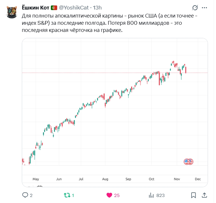 Bija te histērija par to, kā sabrūk ASV ekonomika. "Pilnam apokaliptiskajam skatam - ASV tirgus. Konkrēti - S&P indekss par pēdējo pusgadu. 800 miljardu zaudējums - tā ir pēdējā sarkanā līnija grafikā."