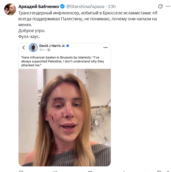 Arkādijs Babčenko: "Trangenderis blogeris, kuru Briselē piekāva islāmisti: "Es vienmēr atbalstīju Palestīnu. Es nesaprotu, kāpēc viņi man uzbruka."