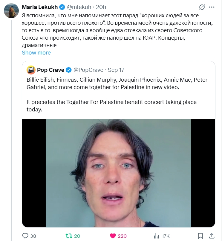 Par to, ka vēsture atkārtojas, twiterī uzrakstīja lietotāja Maria Lekukh @mlekuh. Un šodien ar viņas palīdzību mēs parunāsim par labajiem cilvēkiem, kas mūsdienās aizstāv Palestīnu un par tiem labajiem cilvēkiem, kas savulaik aizstāvēja apspiestos Dienvidāfrikas republikā.